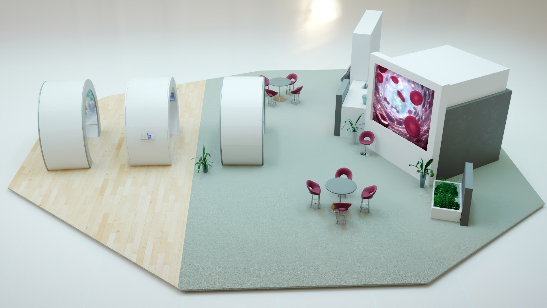 We create high-resolution digital content to enhance scientific storytelling. Such content can be utilized throughout physical booths on a range of outputs such as: