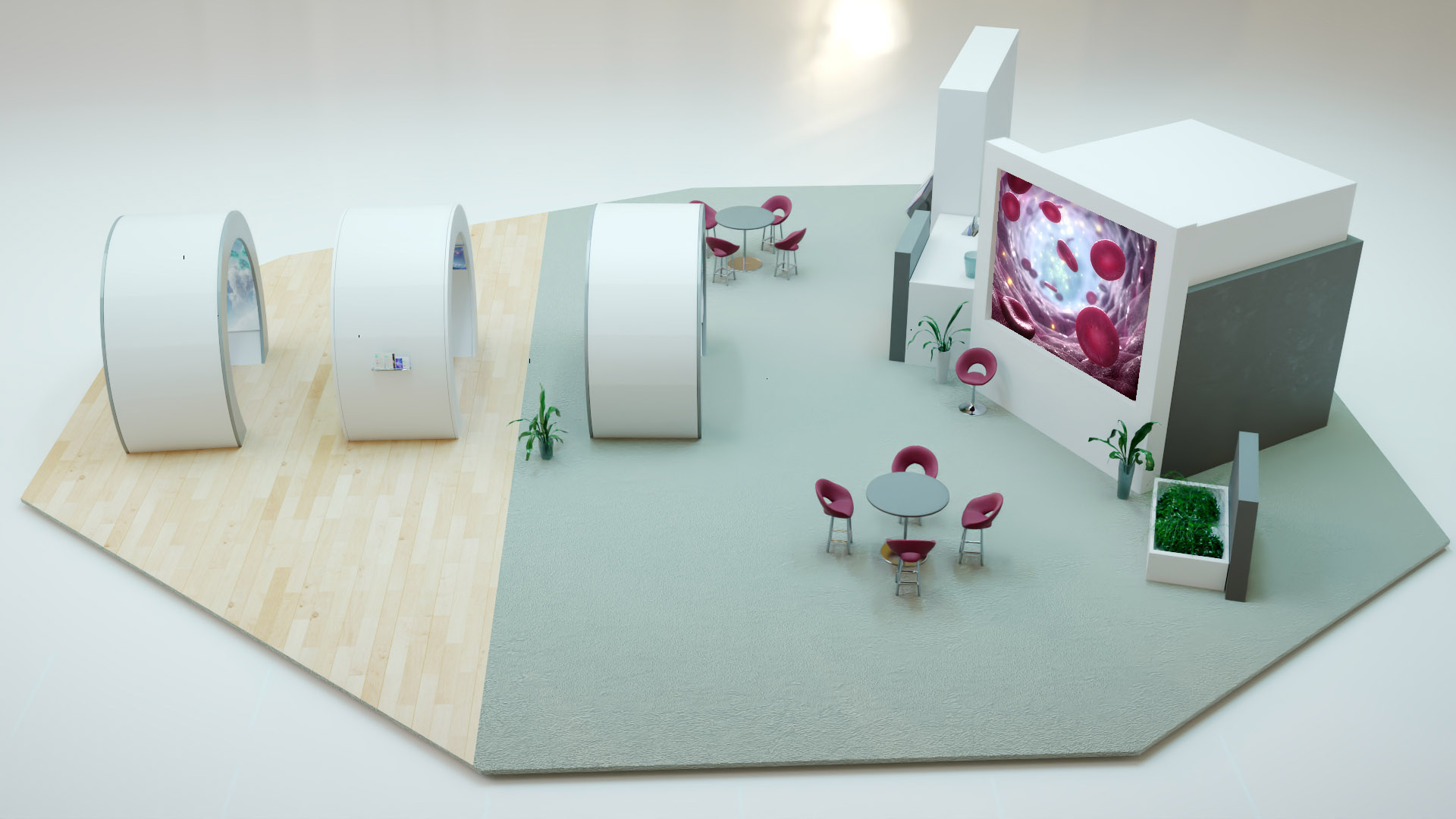 Stunning visual content helps attract people to the booth, encouraging further exploration of the scientific messages behind a product, pathway, or mechanism.