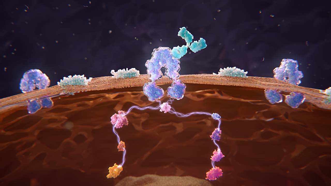 Sling Therapeutics utilized this animation to highlight the mechanism of action (MoA) of a treatment for Thyroid Eye Disease (TED). The animation showcases how Sling’s small molecule drug binds to the target in a different manner than the approved monoclonal antibody (mAb) already on the market.
